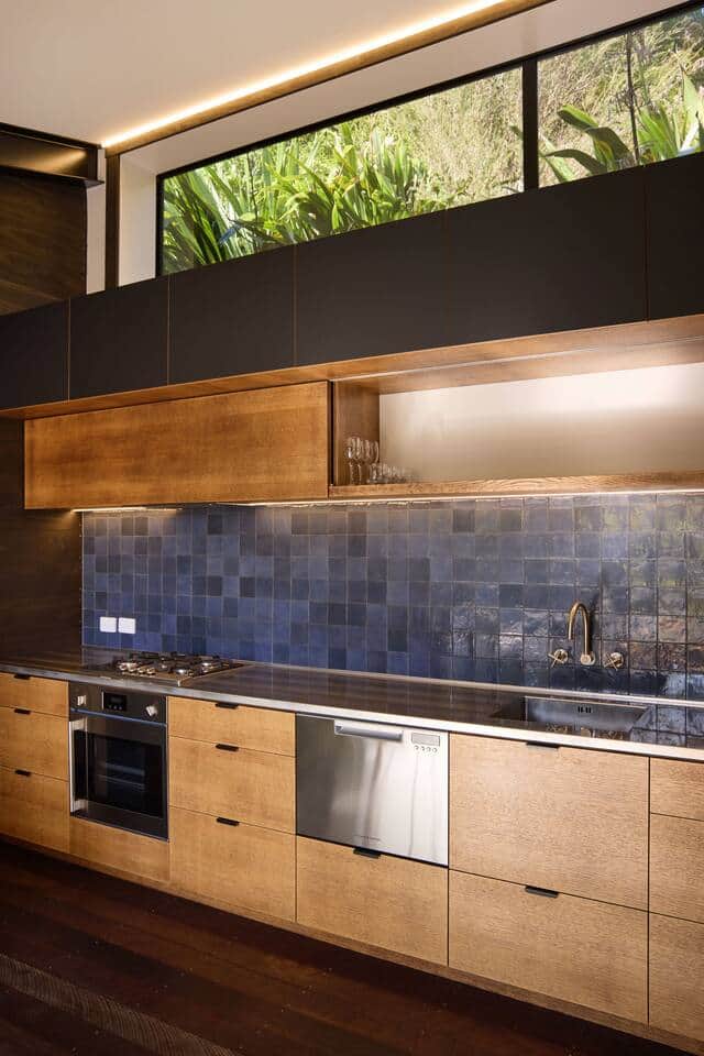 A well designed open plan kitchen, dining and living area with and a tv and sound bar for entertaining.
